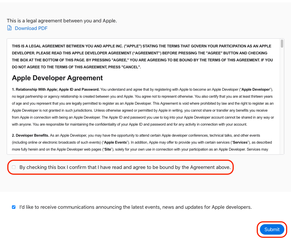 아래와 같은 페이지가 뜨는데, 약관 아래쪽의 'By checking this box...' 체크박스를 클릭하고 아래 Submit 버튼을 누르시면 됩니다.