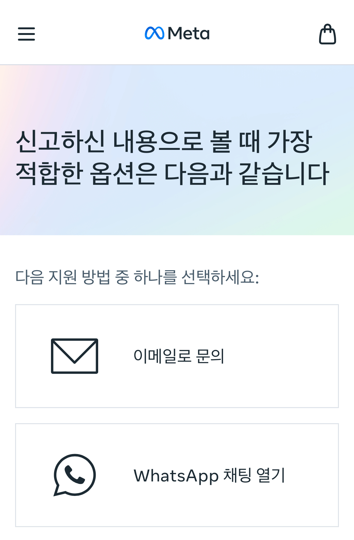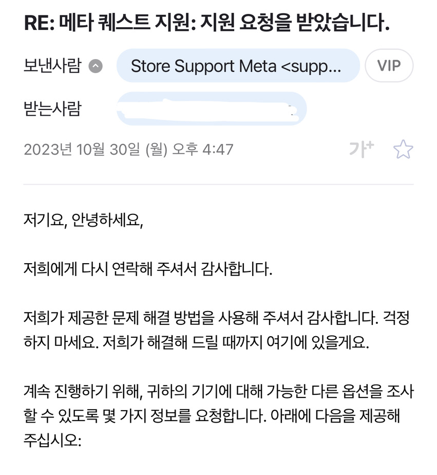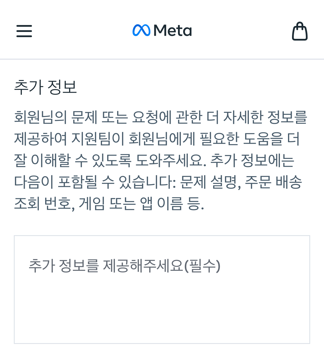 (다른 후기들에 따르면 VPN을 통해 미국 메타 스토어로 접속해 실시간 채팅을 하는 방법도 있다고 합니다. 시간이 상당히 단축되므로 급하신 분들은 이쪽 방법을 찾아보는 것도 나쁘지 않아 보입니다.)