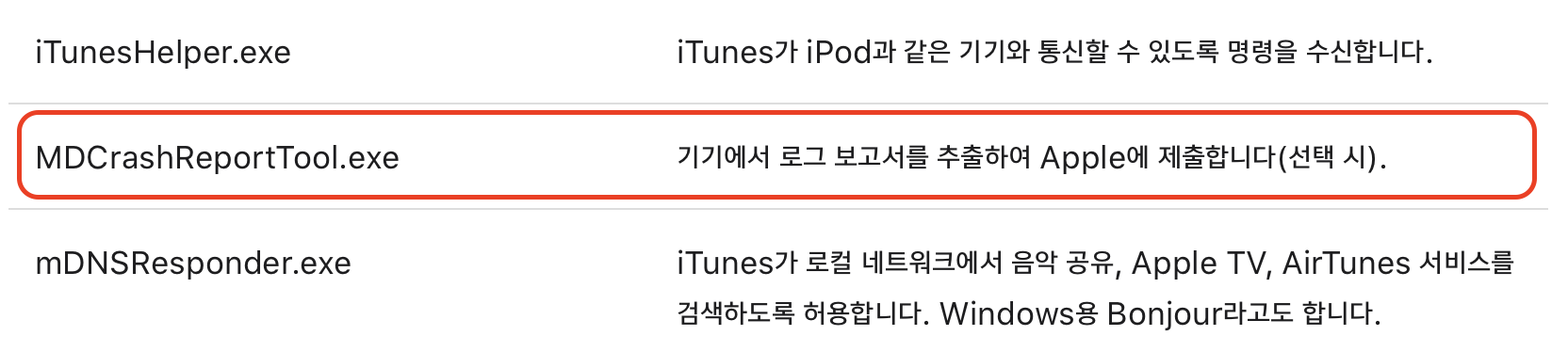 문제가 되는 부분은 바로 MDCrashReportTool 이라고 하는 프로세스로, 아이폰/아이패드에 저장되어 있는 로그를 애플에 전송하는 역할을 합니다. 이 프로세스에 오류가 생겨 로그를 추출하지 못해 동기화 진행에 오류가 생기는 것으로 추정됩니다.