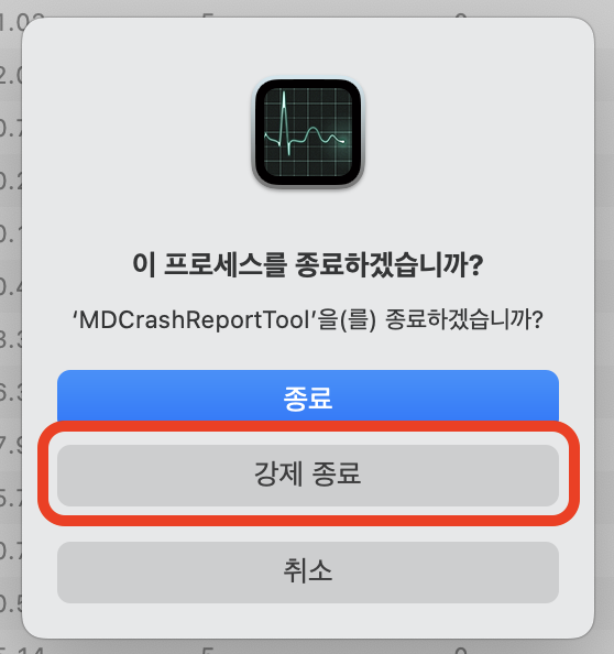 4. 표시된 창에서 '강제 종료'를 누릅니다. (그냥 종료로는 죽지 않는 악독한 녀석입니다.)