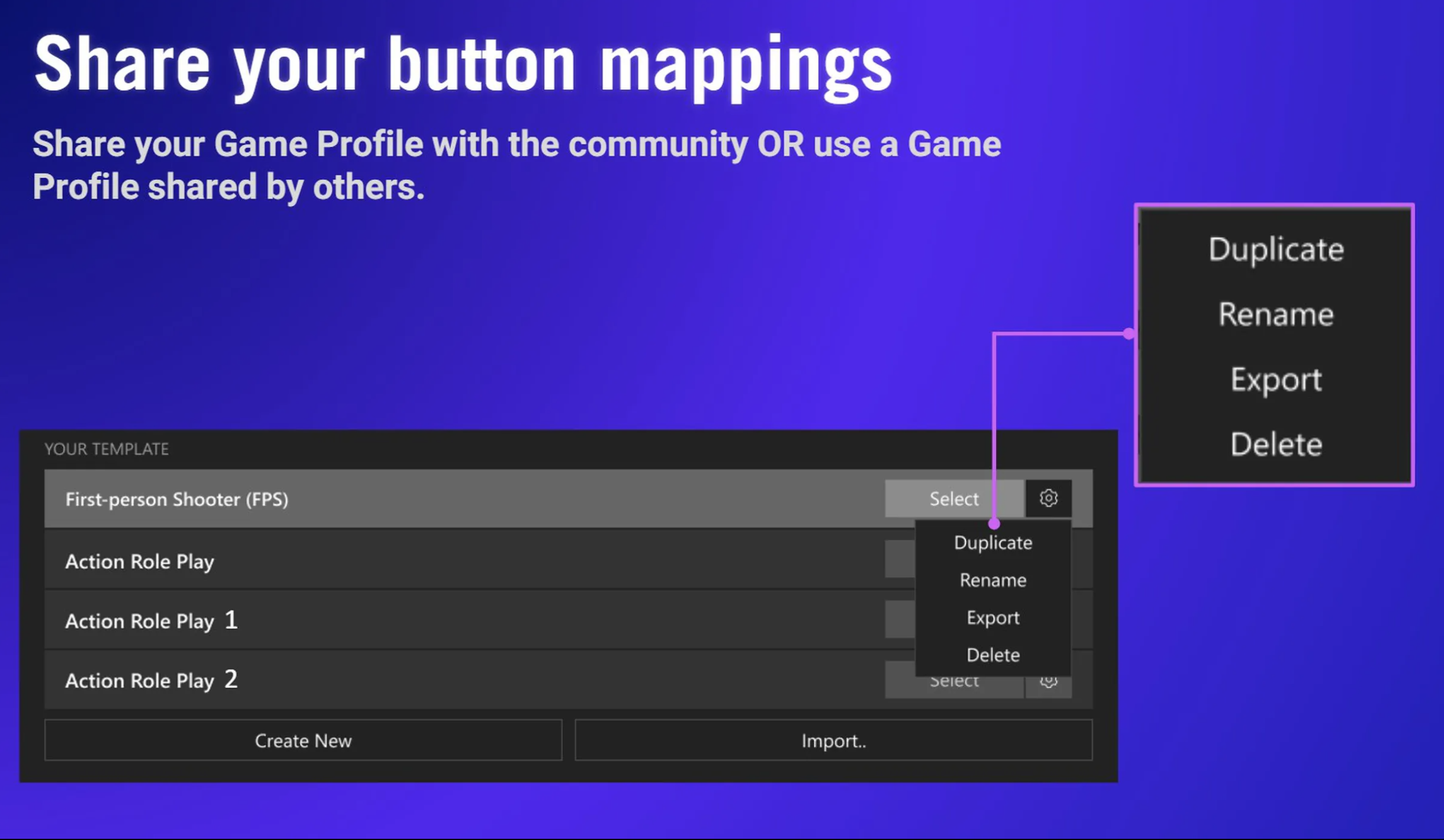 컨트롤러 버튼 맵핑 프로필 생성/공유 지원
