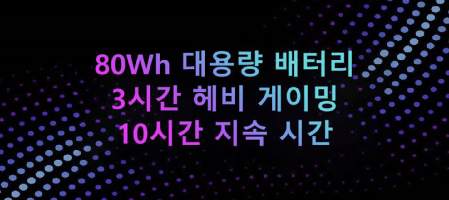 기존의 40Wh에 비해 2배로 늘어난 것으로 체감이 클 것으로 기대되는데, 이전 더 버지와의 인터뷰에서 밝힌 것과 일치하게 3시간 동안 무거운 게임을 돌릴 수 있다고 광고하고 있습니다.