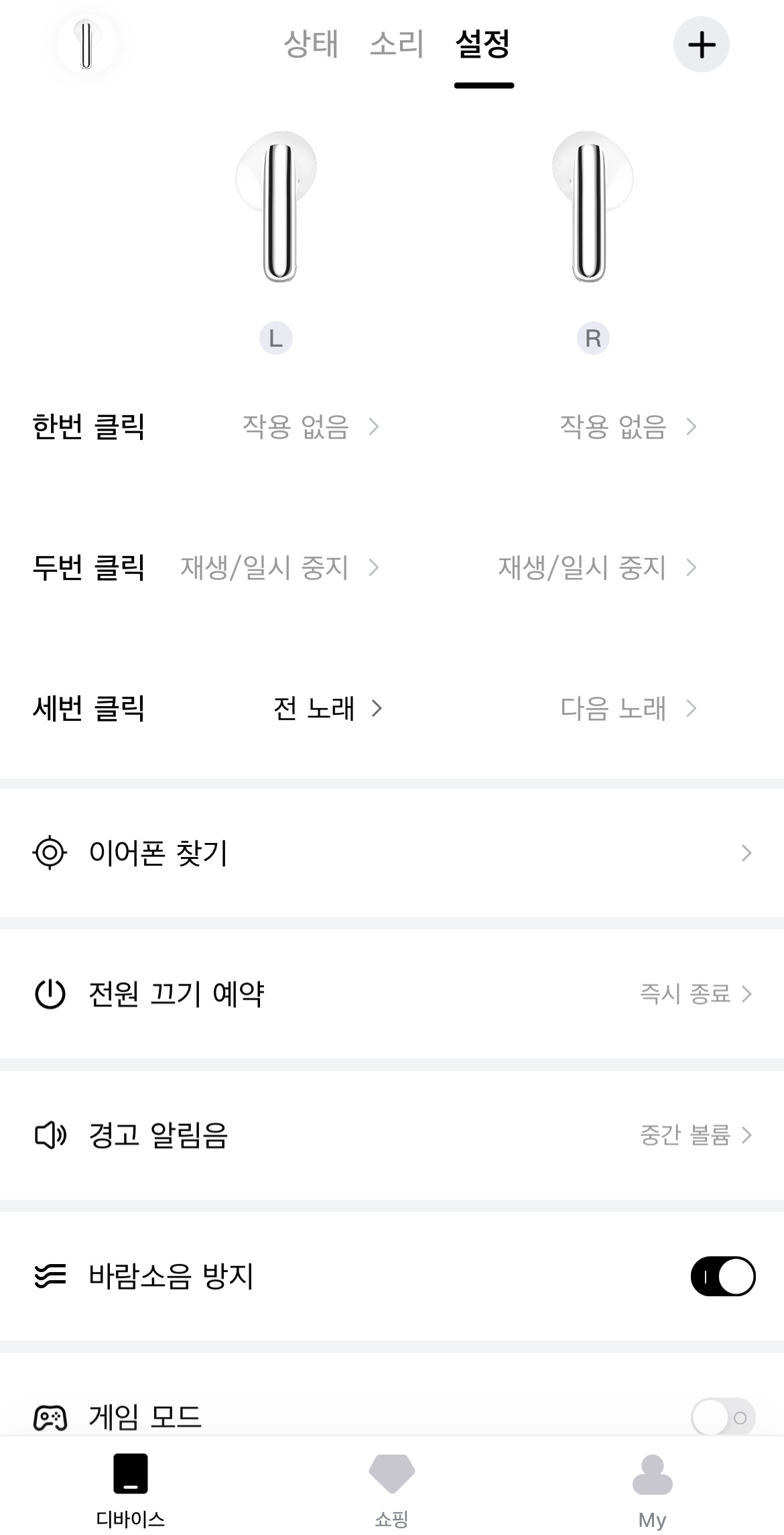 일부 동작은 변경할 수 없는데, 오른쪽을 길게 탭하면 노이즈 캔슬링 토글, 왼쪽을 길게 탭하면 게임 모드 토글은 고정되어 있으며 변경할 수 없습니다.