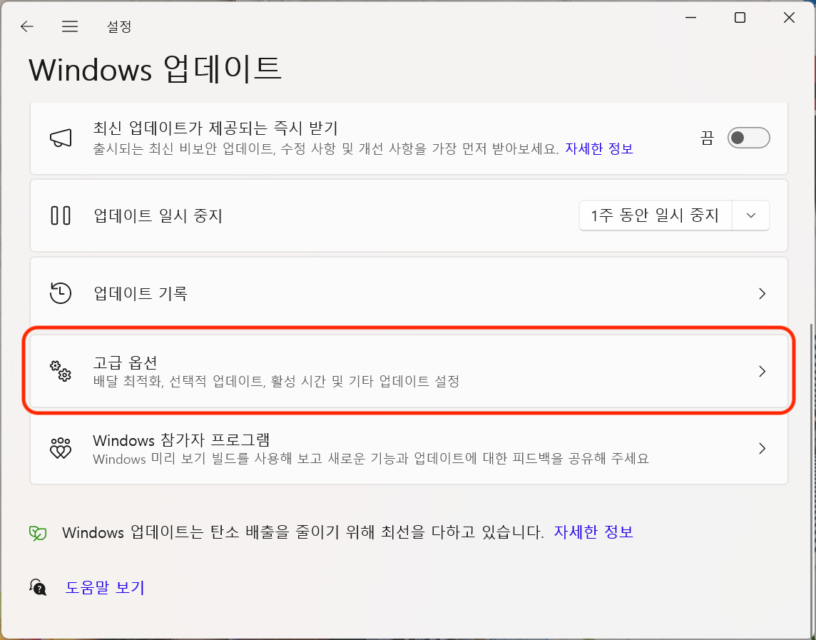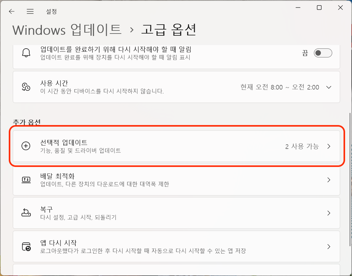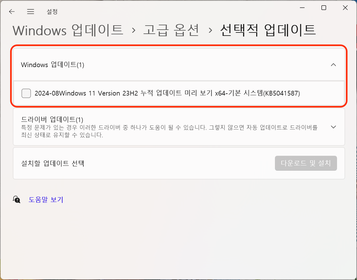 만약 보이지 않는다면 Windows 업데이트 페이지에서