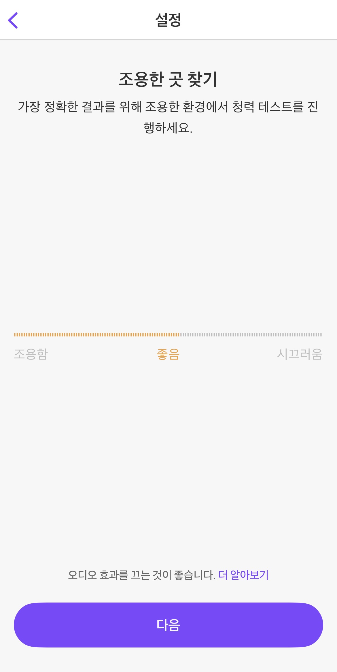 주변 소리 측정 옵션을 켜고 소음 임계값 설정에 들어가니, 위 스크린샷처럼 역치를 설정할 수 있었습니다.