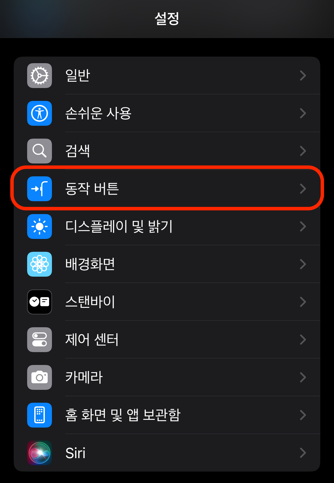 제대로 적용이 되었다면, 재부팅 후 설정에서 '동작 버튼' 설정 메뉴가 새로 생긴 것을 확인할 수 있습니다.