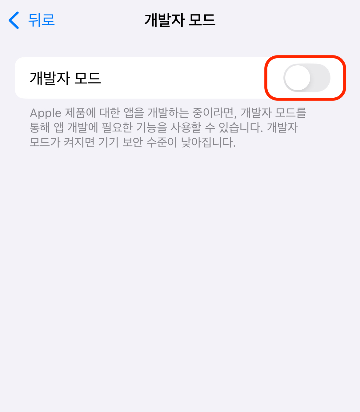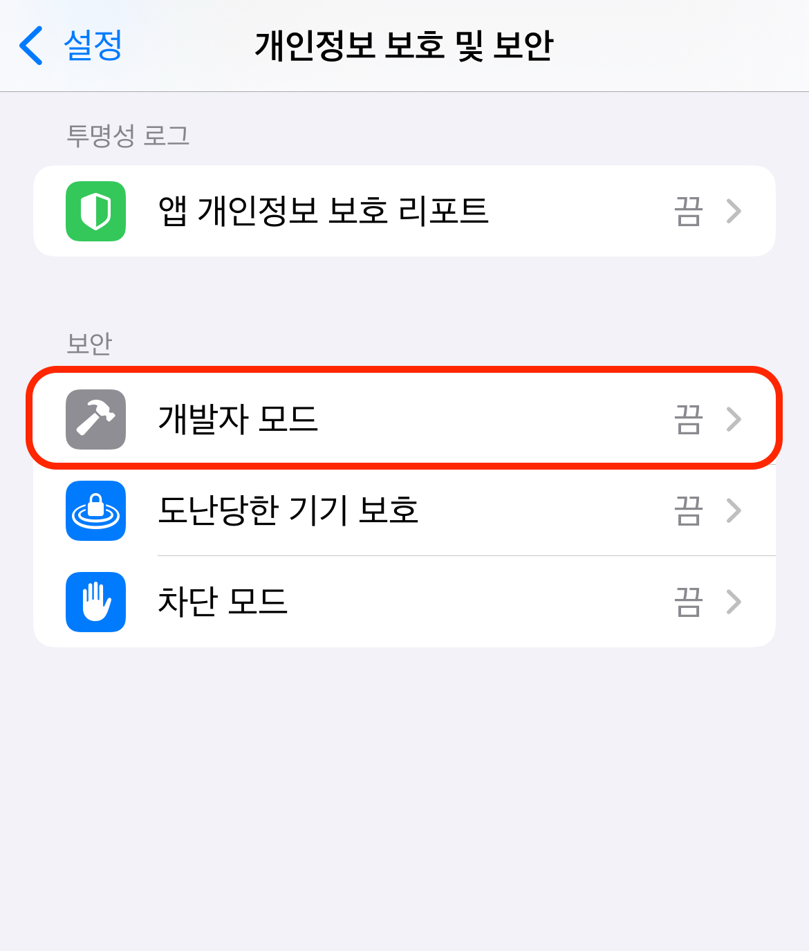 그 다음 설정 앱에서 개인정보 보호 및 보안 - 개발자 모드 로 들어가 개발자 모드를 켭니다.