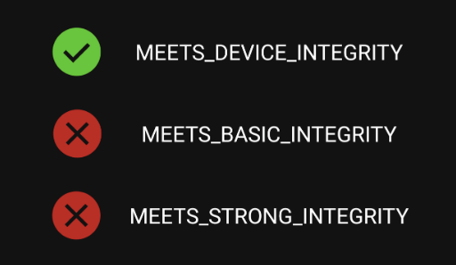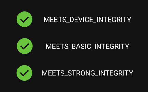Play Integrity API는 시스템 무결성 검사를 한 후, 3종류 라벨(Label)의 통과 유무를 앱에 전달해 줍니다.