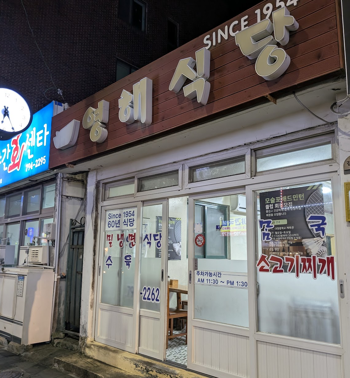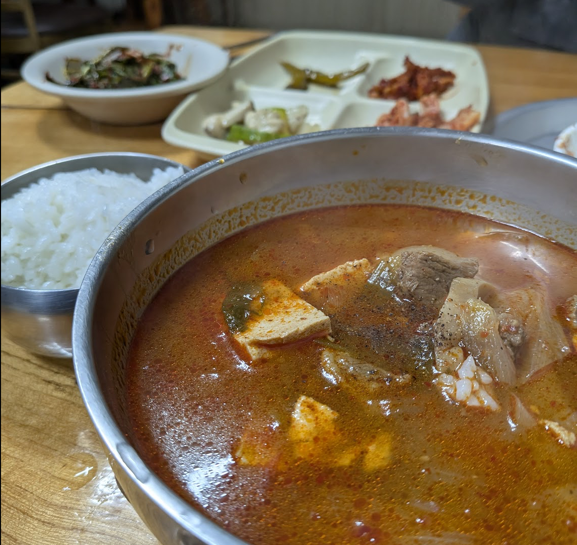 짐을 내려놓은 뒤, 저녁을 먹으러 갔습니다. 로컬맛집인 영해식당으로 갔습니다. 몸국과 소고기찌개, 수육이 일품입니다.