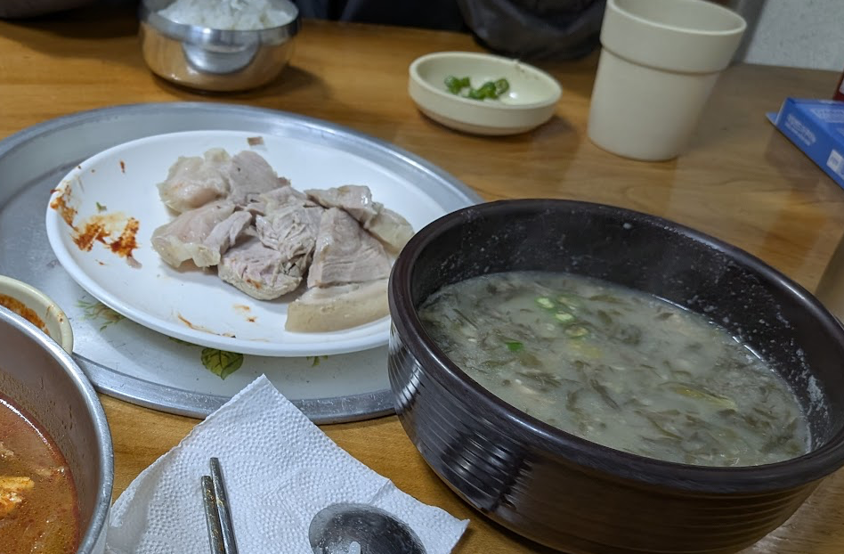 짐을 내려놓은 뒤, 저녁을 먹으러 갔습니다. 로컬맛집인 영해식당으로 갔습니다. 몸국과 소고기찌개, 수육이 일품입니다.