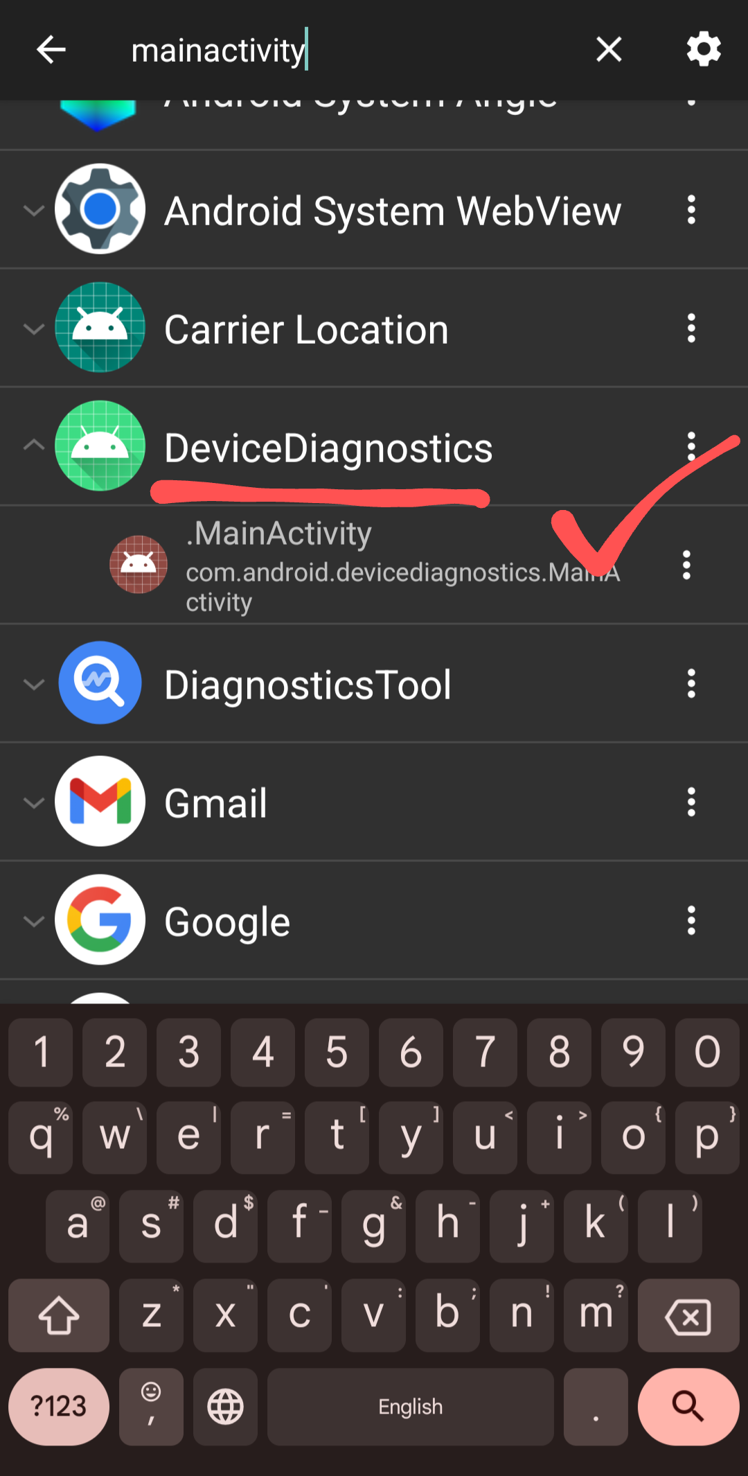 3. '기기 진단' 항목 아래 있는 '.MainActivity'를 터치해서 여세요.