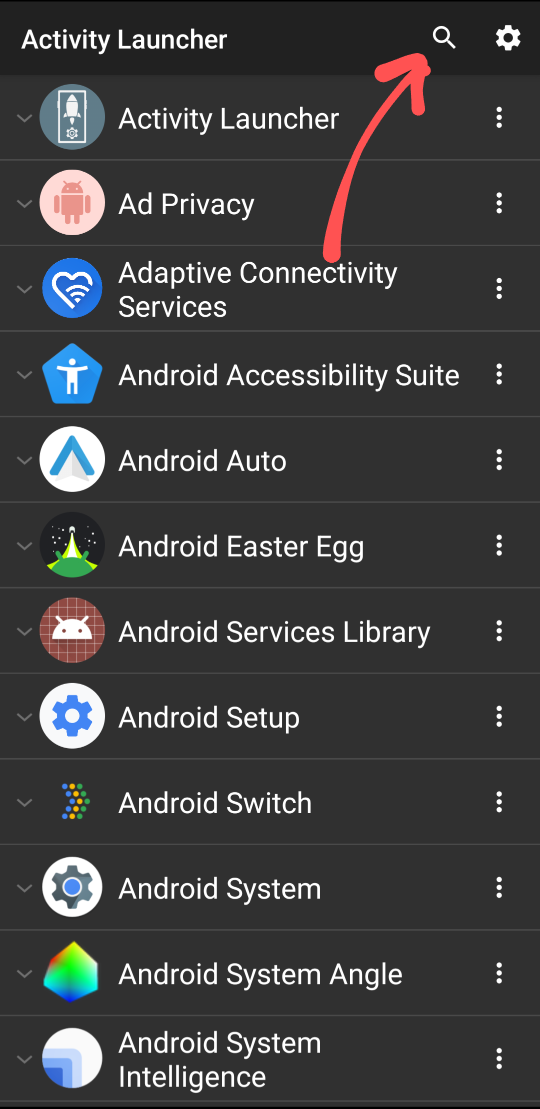 2. 앱을 켜고, 위쪽 검색 버튼을 눌러 Mainactivity를 검색하세요.