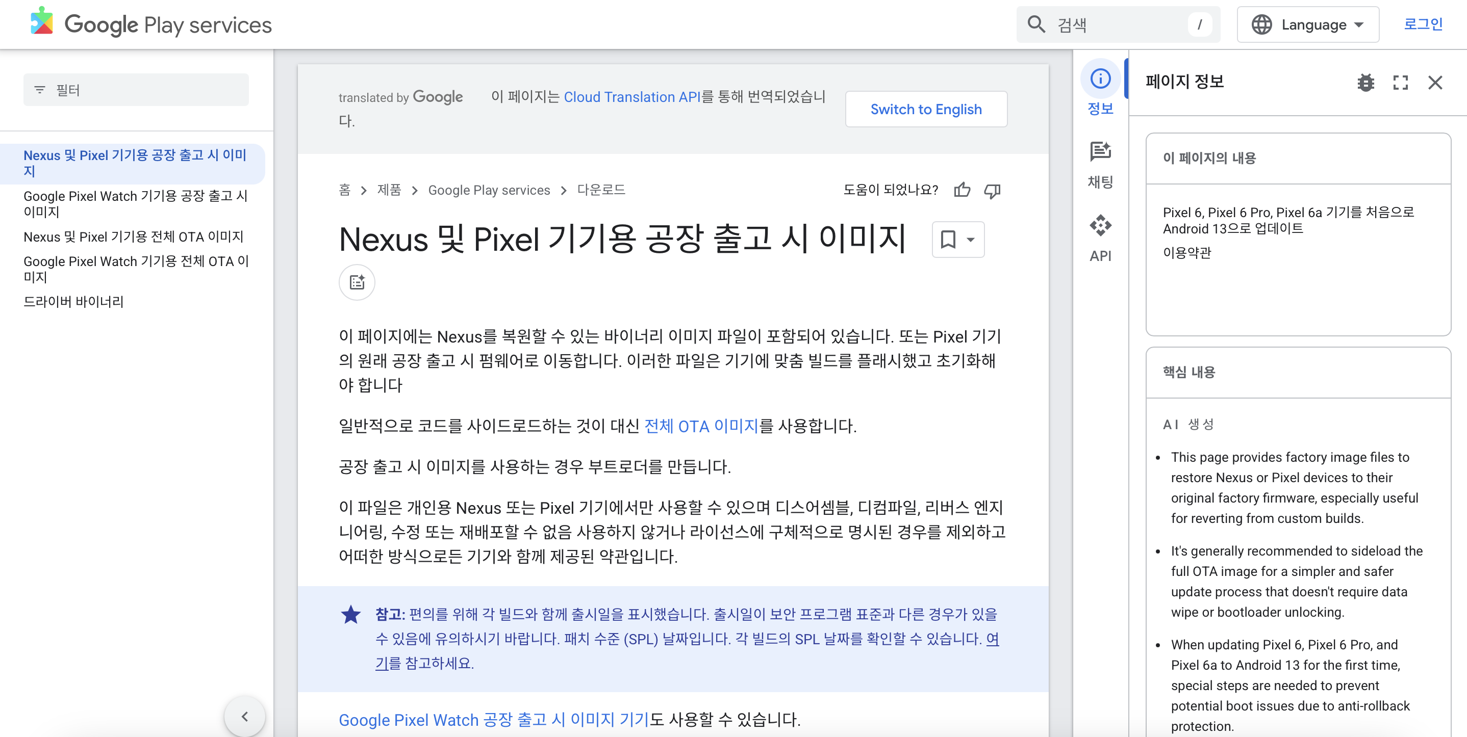 Nexus 및 Pixel 기기용 공장 출고 시 이미지 | Google Play services | Google for Developers