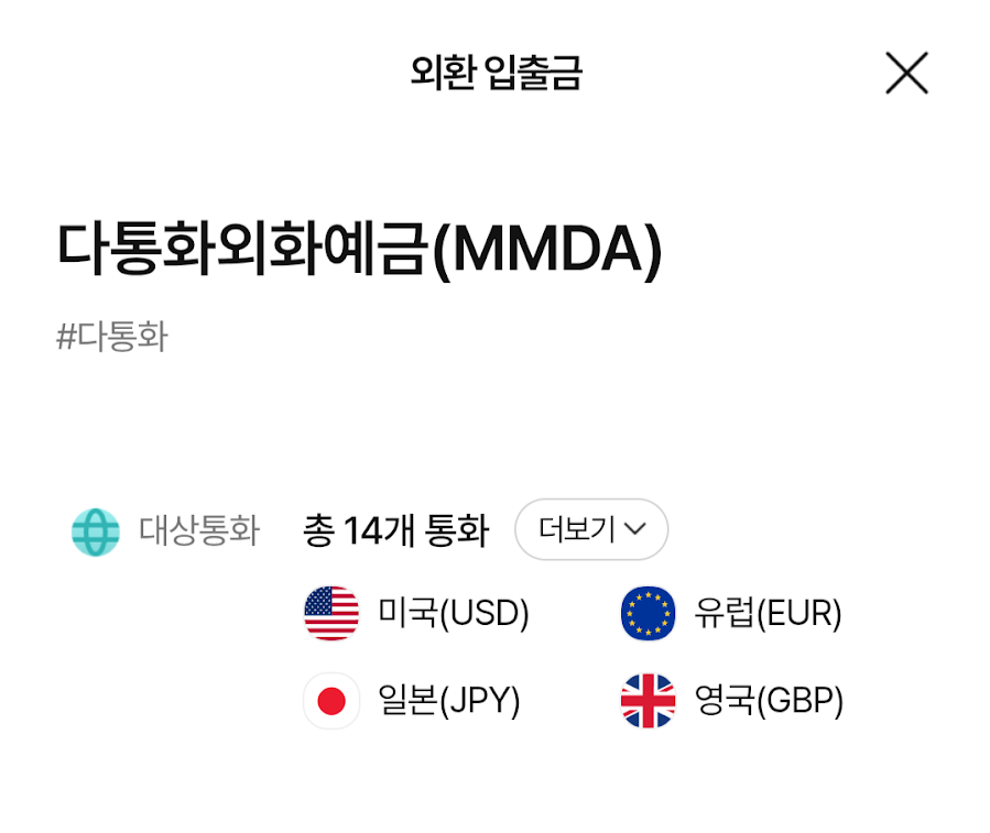 스마트폰에서 NH올원뱅크를 설치해 상품 - 외환 - 입출금 으로 들어가 '다통화 외화예금' 계좌를 만들면 됩니다. (이름은 예금이지만 그냥 입출금통장입니다)