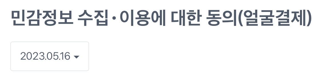 위 세 가지 약관은 현재 토스에서 페이스페이 서비스를 미리 신청할 때 필수 동의해야 하는 약관 중 얼굴결제와 관련된 약관입니다. 이들 중 '민감정보 수집·이용에 대한 동의(얼굴결제)'는 최종 업데이트 날짜가 2023년 5월 16일입니다.