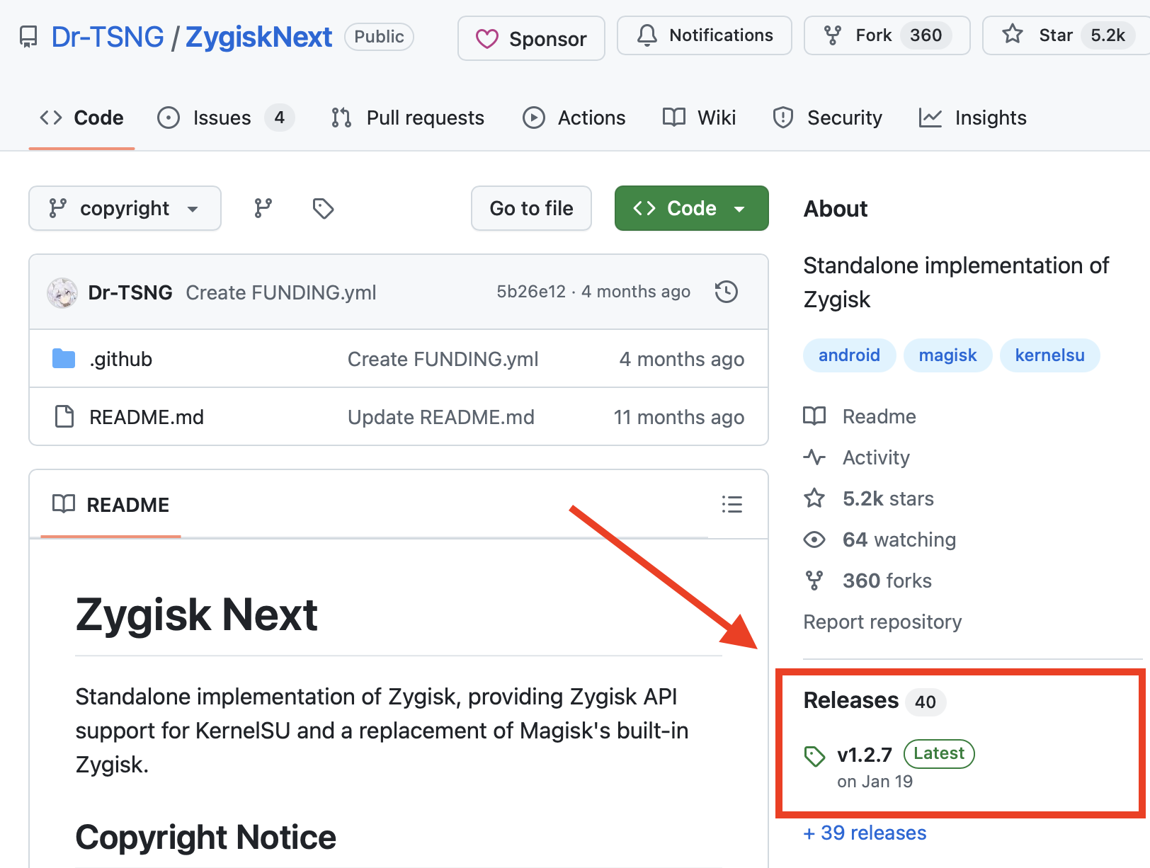 예시로 루팅 탐지 우회를 위한 기본적인 모듈인 Zygisk Next를 설치해보도록 하겠습니다.
