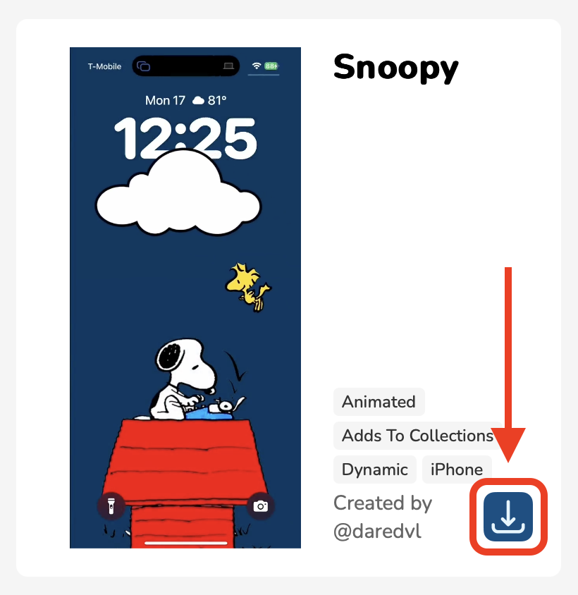 원하는 배경화면 옆에 있는 다운로드 버튼을 누르면 됩니다. 저는 스누피 배경화면으로 해보겠습니다.