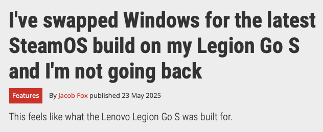PC Gamer의 Jacob Fox는 '다시 윈도우로 돌아가지 않겠다'고 하며, '리전 고 S는 스팀OS로 사용하기 위해 만들어졌다'라고 평가했습니다.