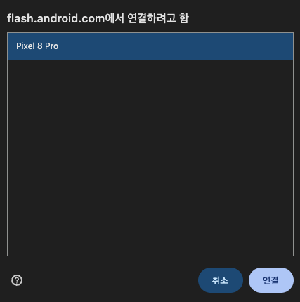 다시 이 창에서 자신의 픽셀을 고르고 연결을 누르면 됩니다. 픽셀이 목록에 뜨지 않으면 USB를 뺐다가 다시 연결해 주세요.