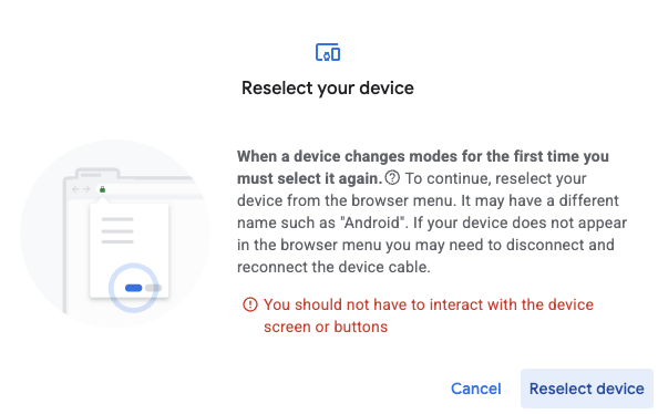 다시 크롬으로 돌아가서 [+ Add new device] 버튼을 누르면 픽셀에 'USB 디버깅을 허용하시겠습니까?'라는 창이 뜹니다.