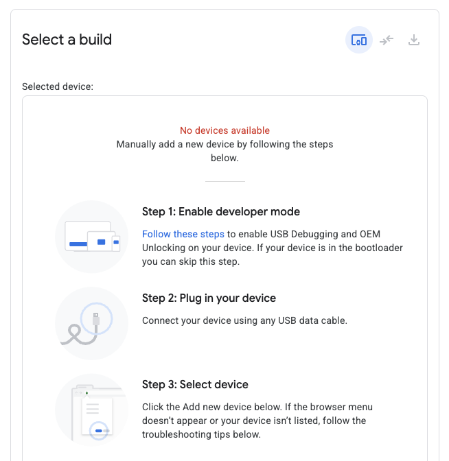 컴퓨터에서 크롬을 켜고, Android Flash Tool 웹사이트에 접속합니다.
