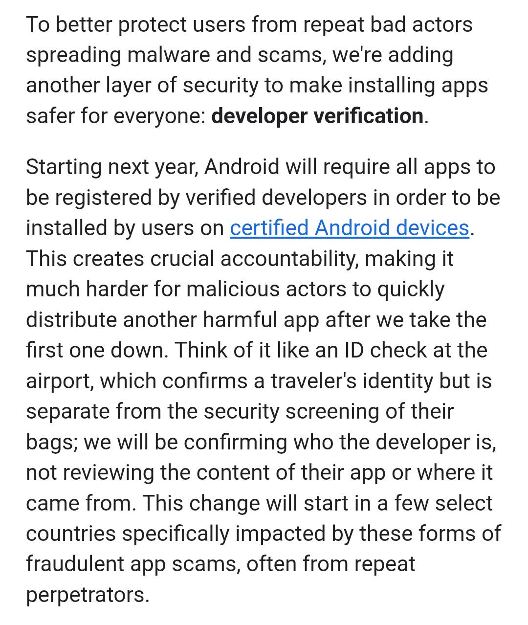 이 변경점들은 앱 스캠이 잦은 일부 국가(브라질, 인도네시아, 싱가포르, 태국)에서 2026년 9월부터 적용될 것이며, 2027년부터 점차 전세계 공통으로 롤아웃될 것이라고 합니다.