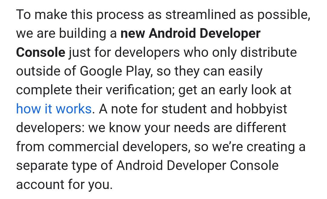 또한 학생과 취미 개발자들은 필요가 다른 걸 알기 때문에, 별도 형태의 안드로이드 개발자 콘솔 계정을 만들고 있다고 합니다.