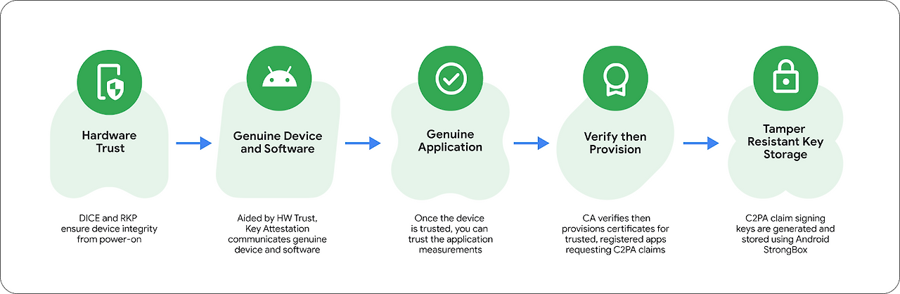 이 기술을 위해 구글이 보안 개념적으로 크게 공을 들이고 있다는 것을 체감할 수 있습니다. Content Credentials을 실기기에 도입하는 데에 있어 다양한 문제들이 있었을 것이고, 이를 해결하는 과정에서 새로운 개념들과 하드웨어/소프트웨어가 많이 생성되었을 것으로 예상합니다.
