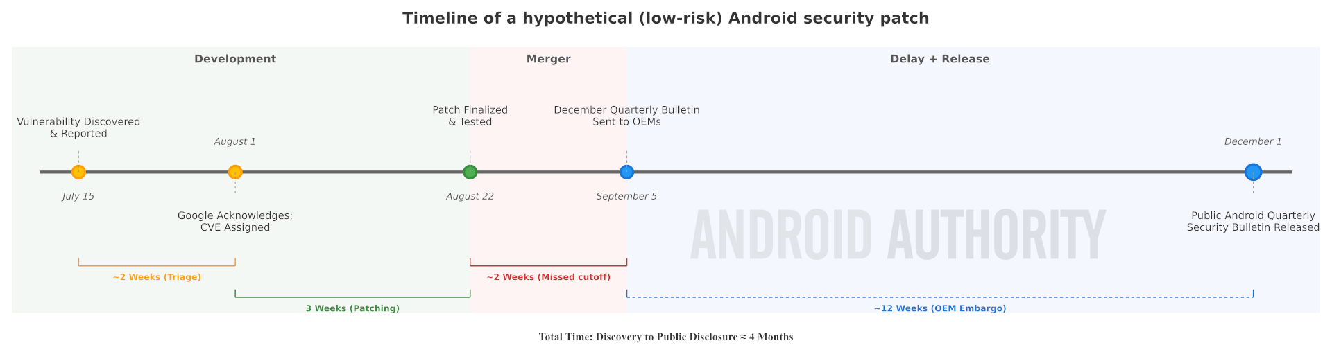 - 외부 연구자나 개발 커뮤니티에는 고위험 취약점 정보가 즉시 제공되겠지만, 중간 위험 이하 취약점에 대해서는 공개 시점이 늦어지므로, 보안 연구 및 커스텀 롬 개발자 등의 대응 속도가 떨어질 수 있습니다.