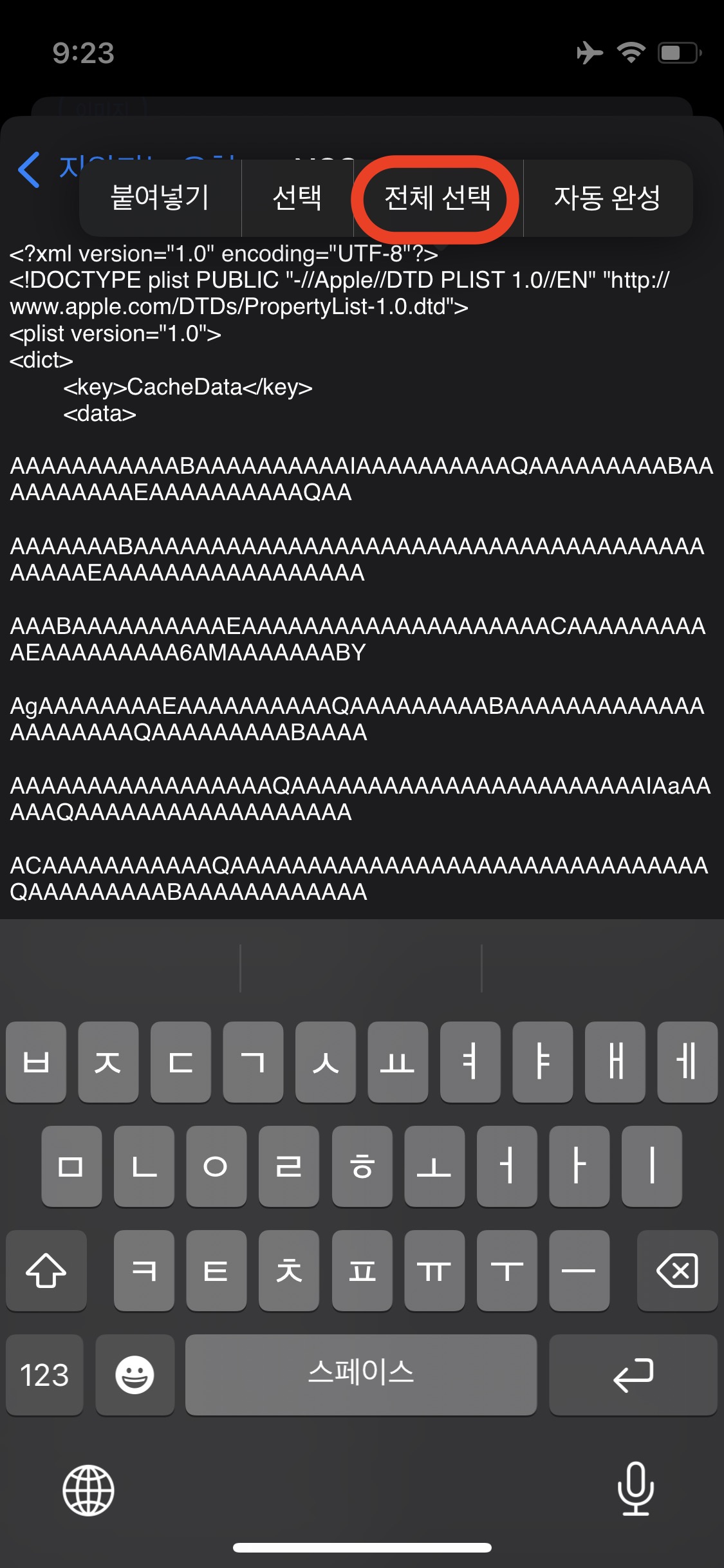 이 텍스트의 아무 곳이나 터치해서 키보드와 커서를 불러낸 뒤, 커서를 두드려 나오는 팝업에서 '전체 선택'을 눌러 내용 전체를 선택합니다. 텍스트 전체가 선택되고 나오는 팝업에서 '복사하기'를 눌러 전체 내용을 복사합니다.