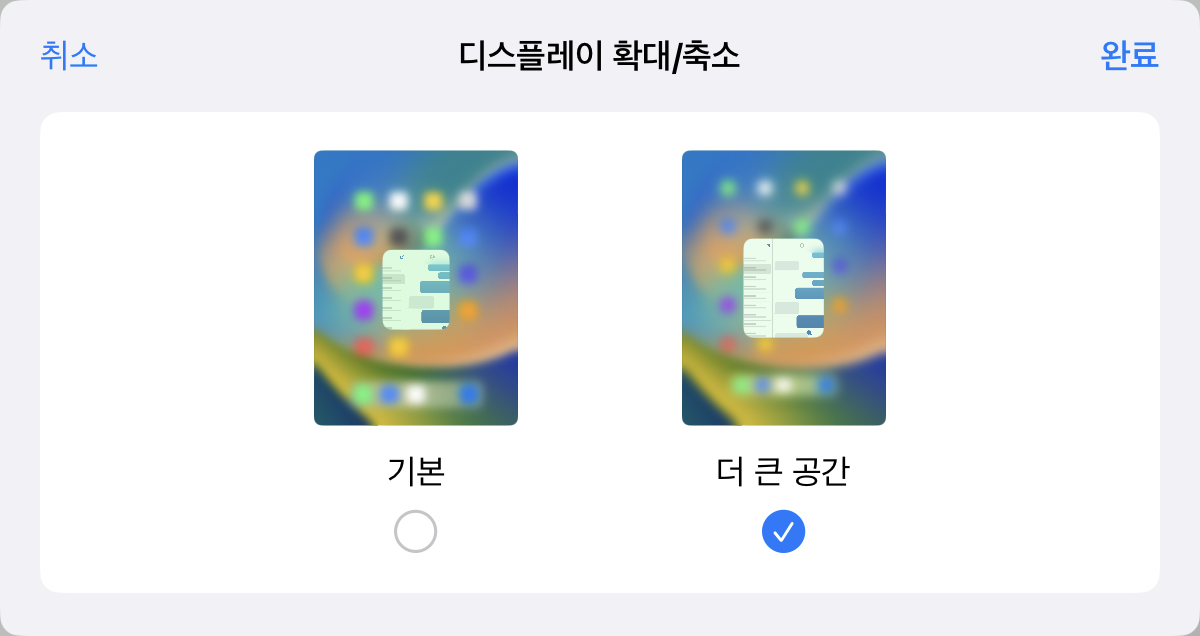 간단히 설명드리자면, 화면이 작은 아이패드를 화면이 큰 아이패드처럼 쓸 수 있게 해 주는 옵션입니다.