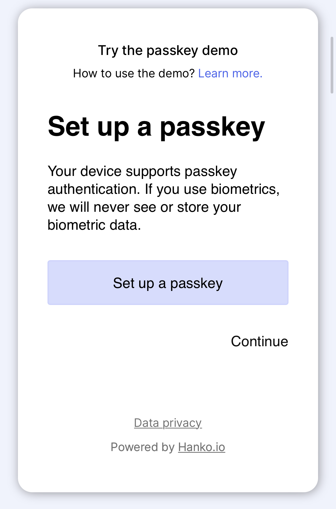 Try the passkey demo and learn the basic facts and use cases about the new passwordless authentication standard powered by FIDO2 and WebAuthn.