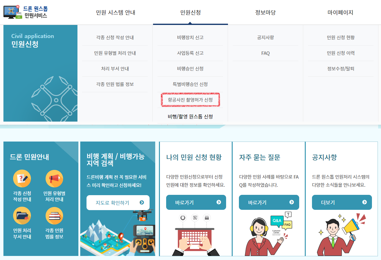 특히 촬영신청은 비행승인과 방법이 거의 같으므로, 비행승인 신청을 먼저 했다면 더욱 편하게 신청하실 수 있습니다.