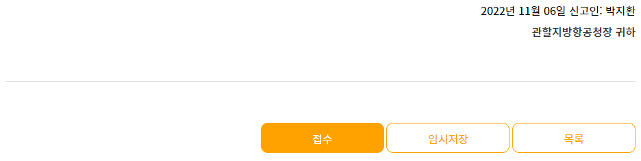 필요한 정보 입력이 전부 끝났습니다. 맨 아래의 주황색 '접수'버튼을 누르시면 신청이 완료됩니다.