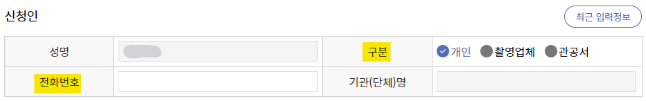 - 기관(단체)명은 개인일 경우 작성하실 필요가 없습니다.