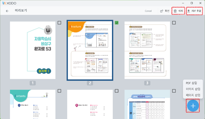 4. 원하는 페이지만 골라내기, 필요없는 페이지 지우기, 원하는 페이지 넣기