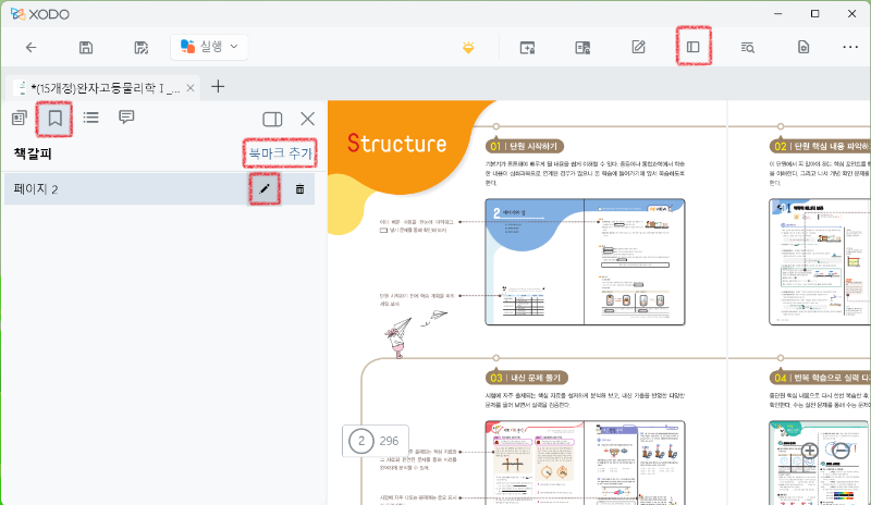 책의 목차나 요약본이 있는 페이지에 책갈피를 설정하면 나중에 다시 찾아보기 편하겠죠?