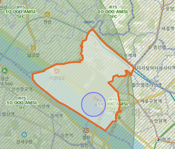 - 공역: 김포국제공항 관제권, R75 비행제한구역