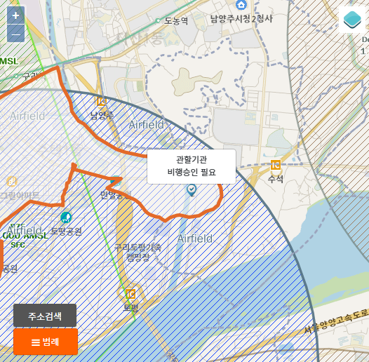 비행승인 필요 주소: 주소가 검색되지 않았습니다. ※ 사유지, 해수욕장, 국립공원, 문화재, 청와대, 교도소, 군부대, 국가중요시설 등은 해당지역의 소유자 및 관리사무소가 있을 경우 반드시