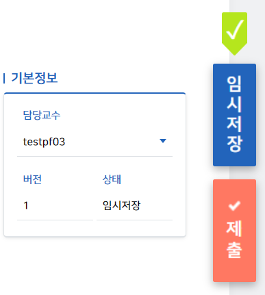 화면 오른쪽에 떠다니는 임시저장, 제출 버튼을 만들어서 바로바로 임시저장하고 제출할 수 있게 했습니다.