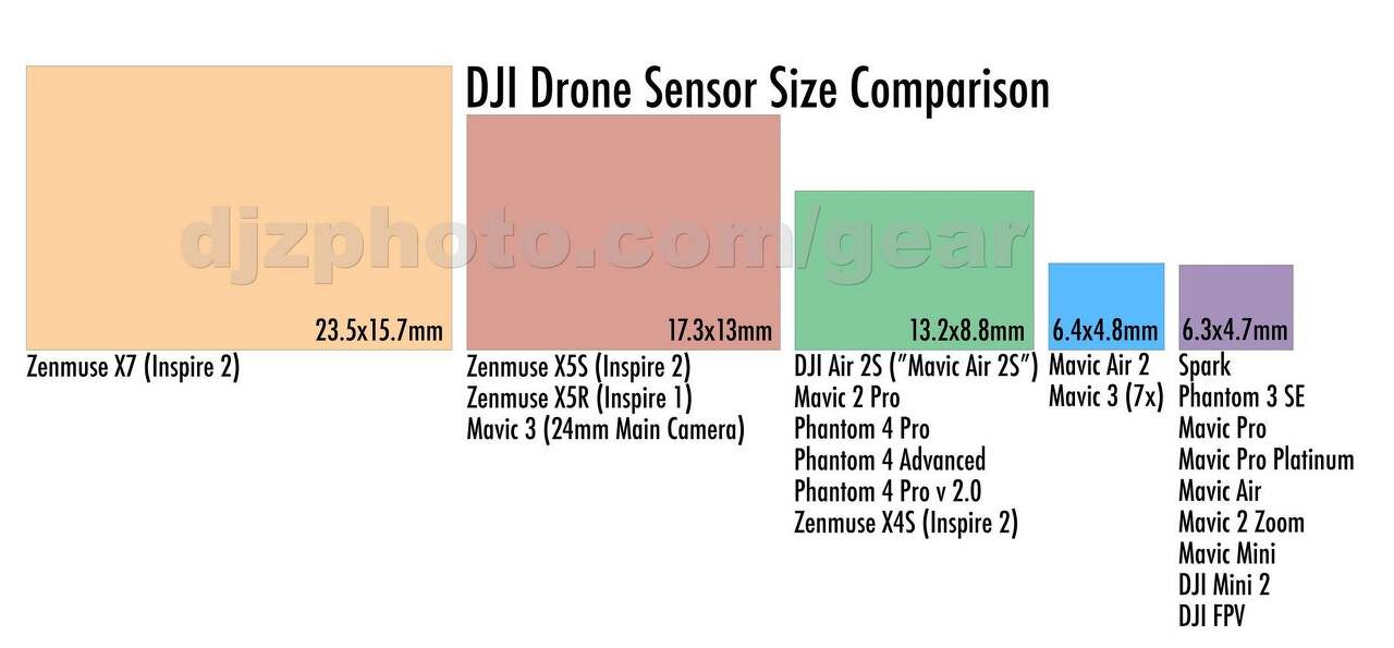 DJI 드론의 센서 크기 비교