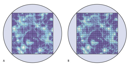 자, 위 그림처럼 크기가 같은 센서 두 개가 있다고 생각해 봅시다. 하나는 센서에 담겨 있는 화소 수가 1200만개이고, 다른 하나는 4800만개입니다. 그럼 화소 하나당 면적은 어떤 것이 더 크게 될까요? 당연히 화소 수가 더 적은 쪽일 겁니다. 화소 하나당 받는 빛은 1200만 화소인 쪽이 4배 더 많은 것이죠.