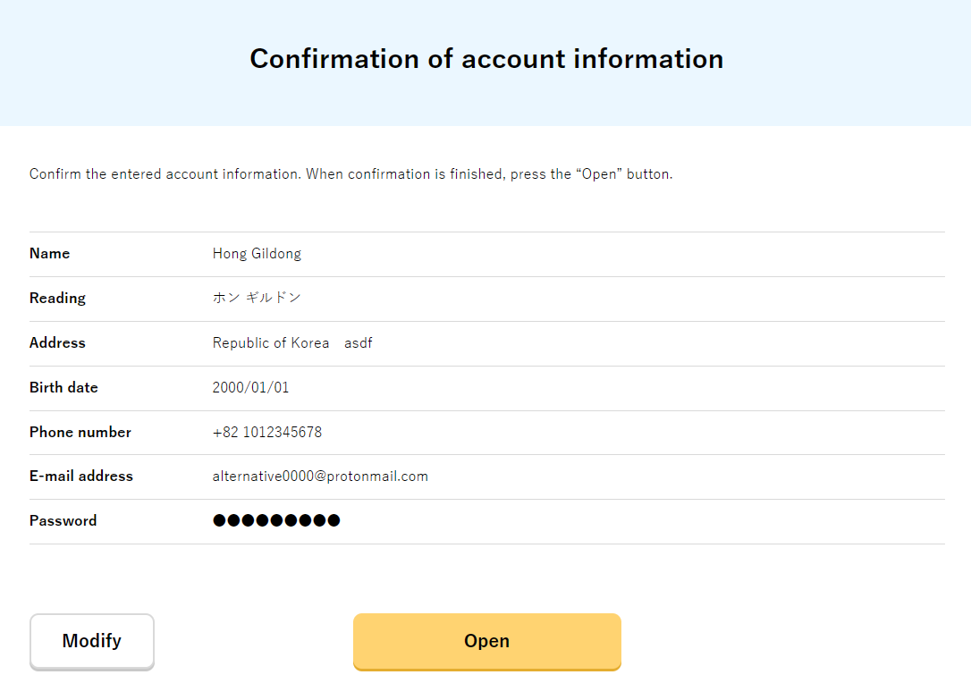 방금 입력한 정보가 맞는지 확인하는 창이 뜹니다. 한 번 더 확인하시고, 'Open'을 누릅니다.