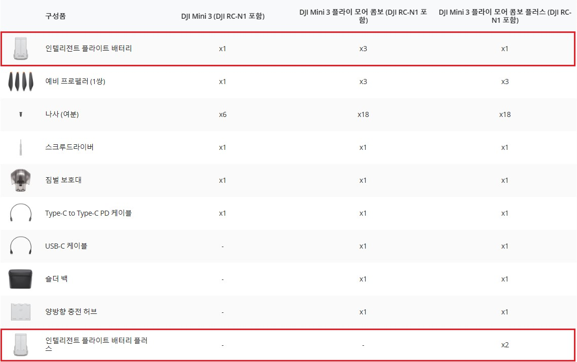 '플라이 모어 콤보 플러스'는 DJI Mini 3와 Mini 3 Pro에만 있는 특수한 플라이 모어 콤보입니다.