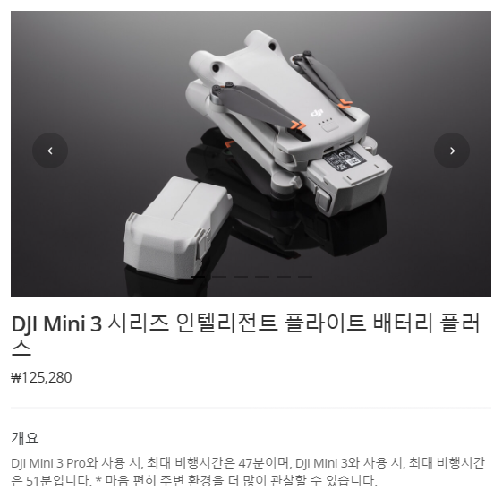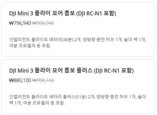 그런데 DJI 스토어를 잘 살펴보면, 미니 3 시리즈에는 플라이 모어 콤보 이외의 콤보가 하나 더 있습니다.