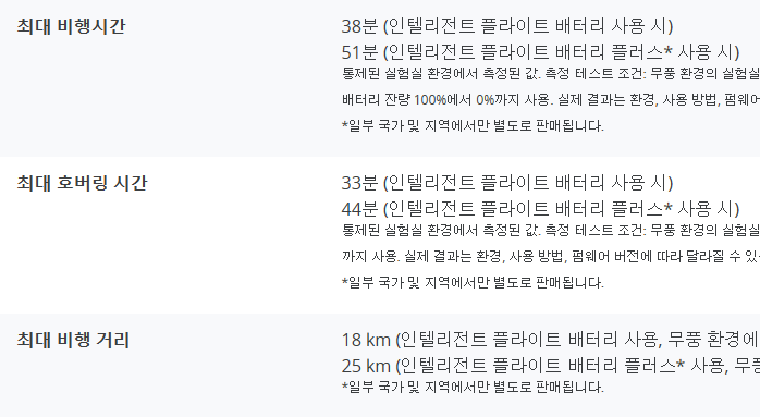 DJI 공식으로 제시한 배터리 사용 시간은 실제 사용 시간과는 다소 차이가 있으므로, 정확한 것은 직접 사용해야 알 수 있습니다.